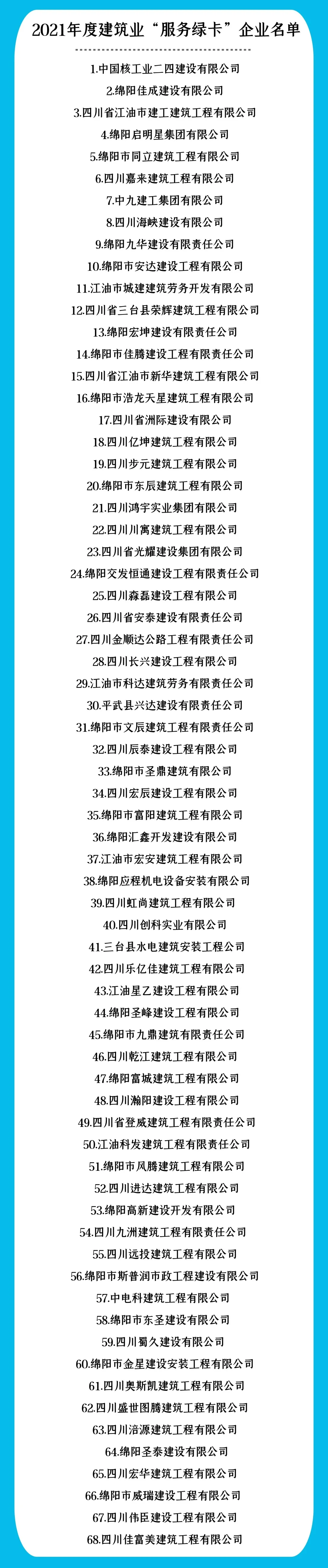 根據(jù)《綿陽(yáng)市建筑業(yè)及房地產(chǎn)綠卡企業(yè)服務(wù)管理辦法》規(guī)定,“服務(wù)綠卡”企業(yè)實(shí)行每年公布一次,有效期為一年。