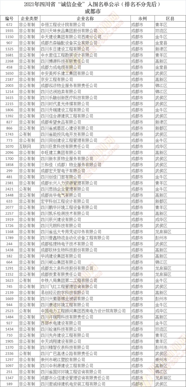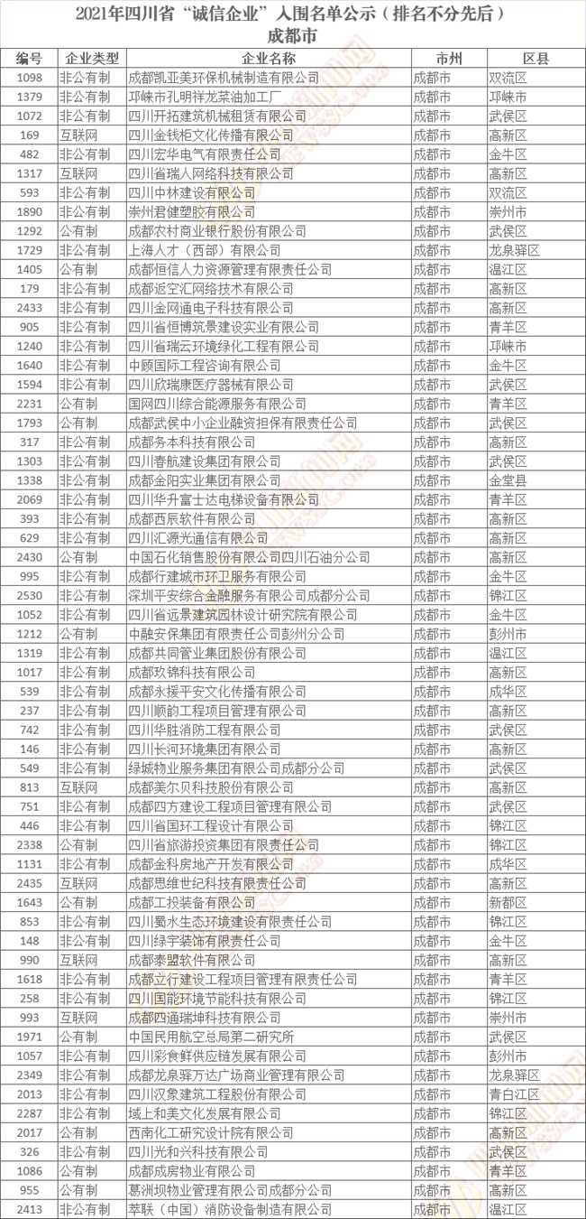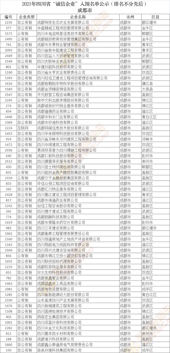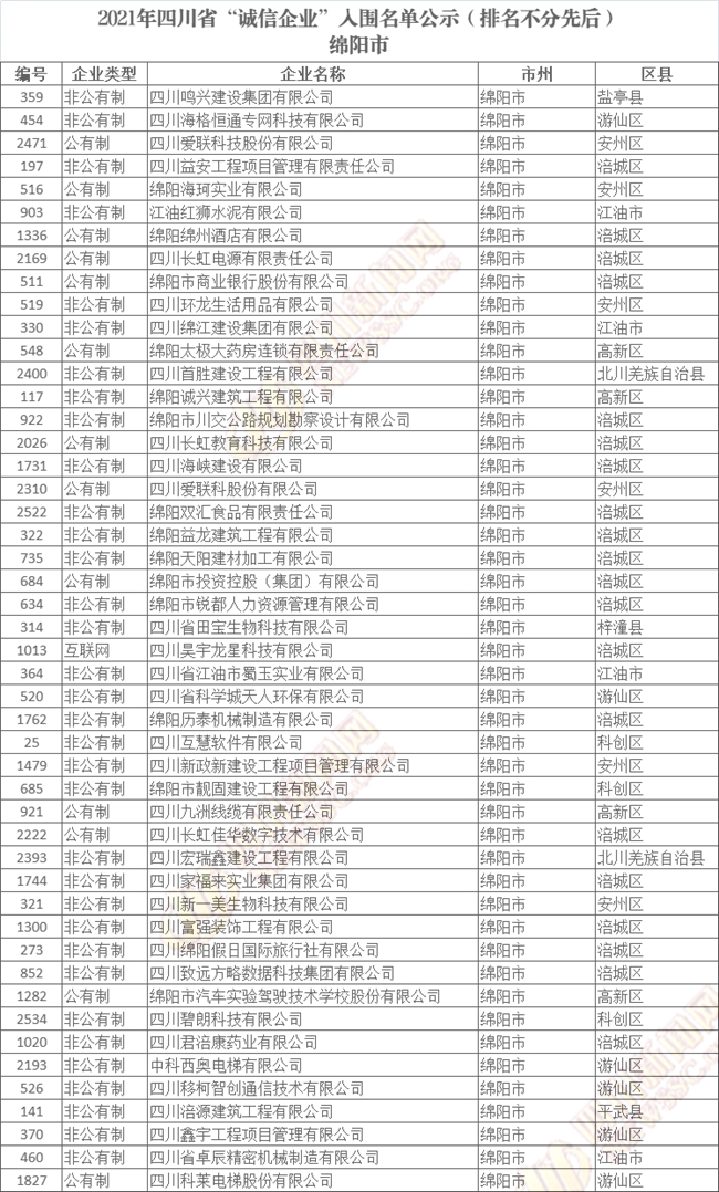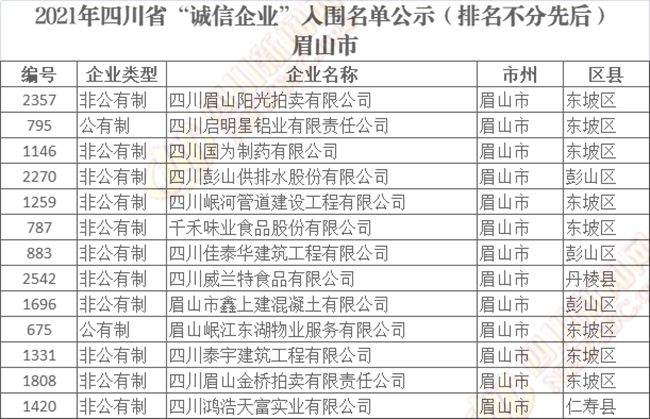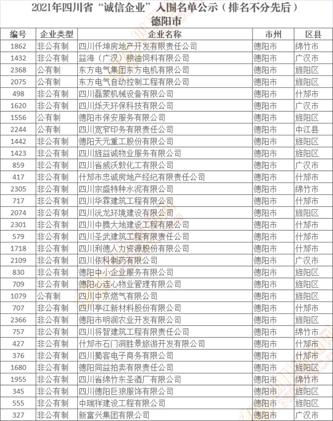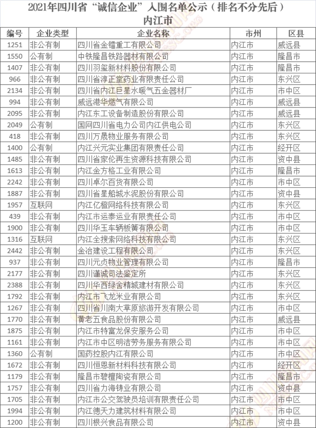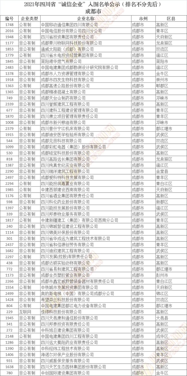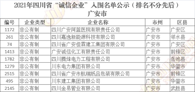 誠(chéng)信企業(yè)公示名單如下(排名不分先后):