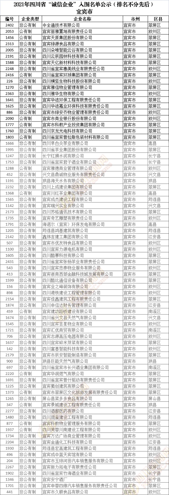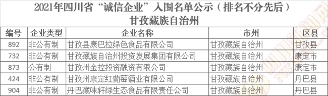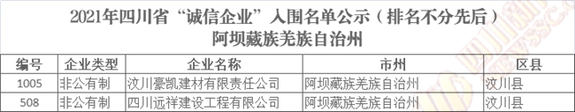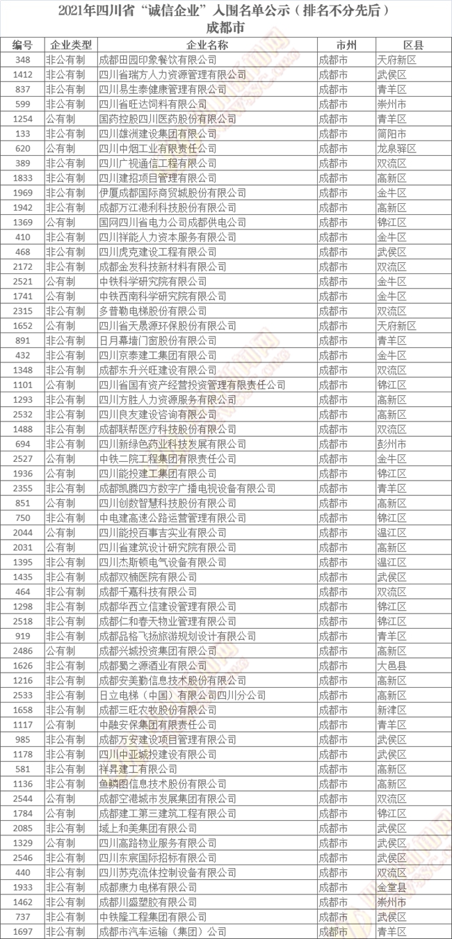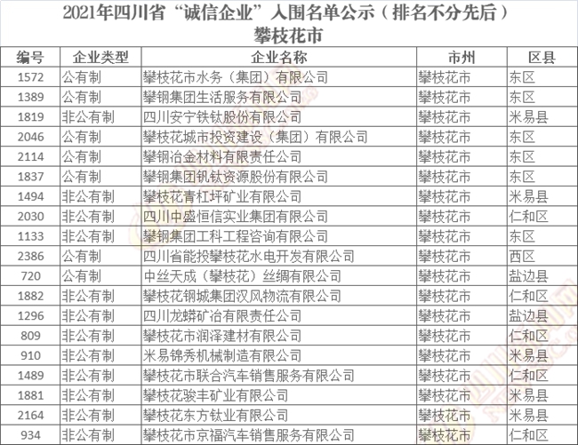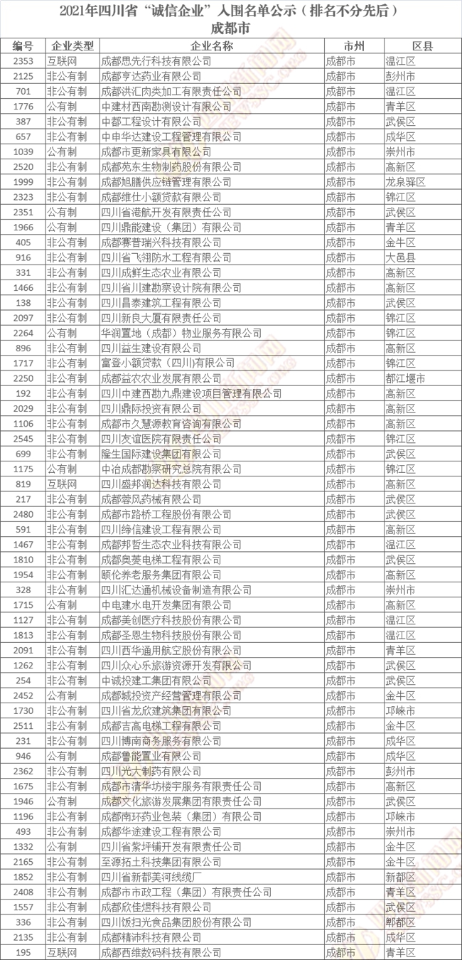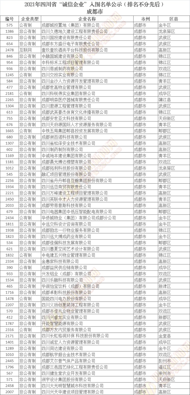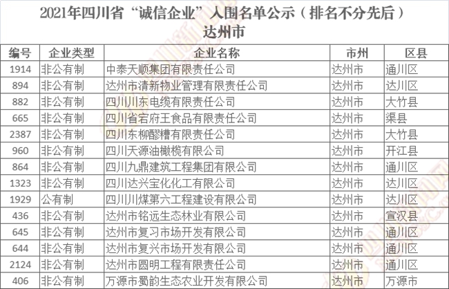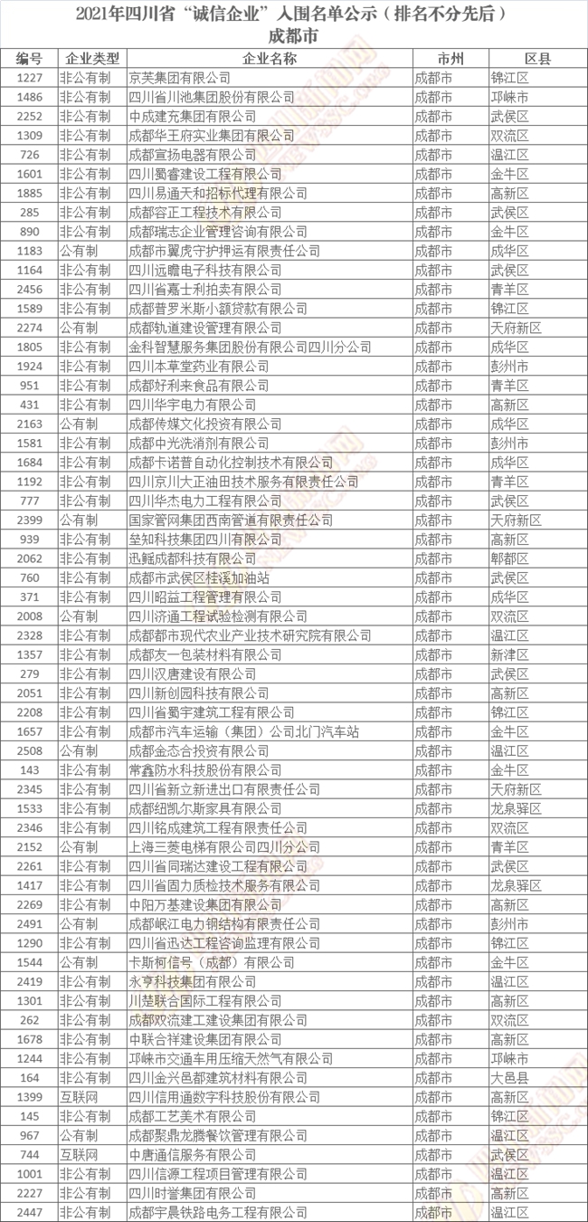 誠(chéng)信企業(yè)公示名單如下(排名不分先后):